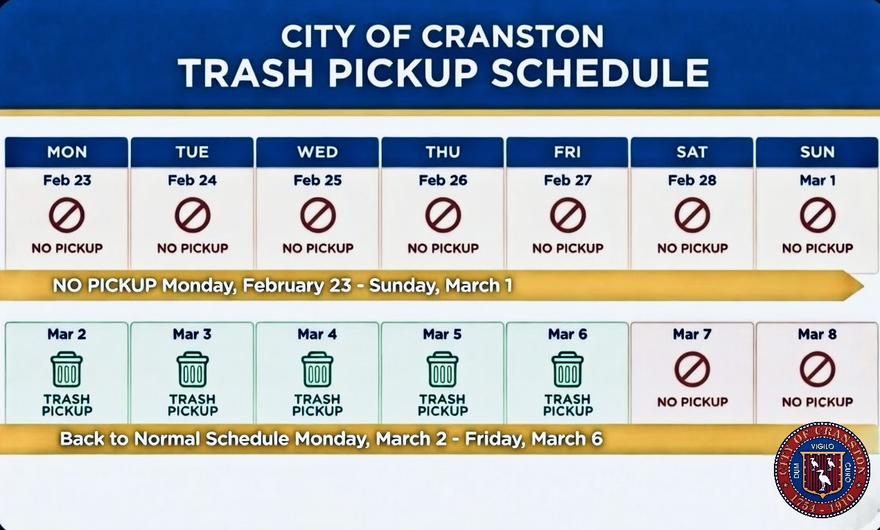 Trash collection in Cranston is suspended for the remainder of the week to support snow removal operations.