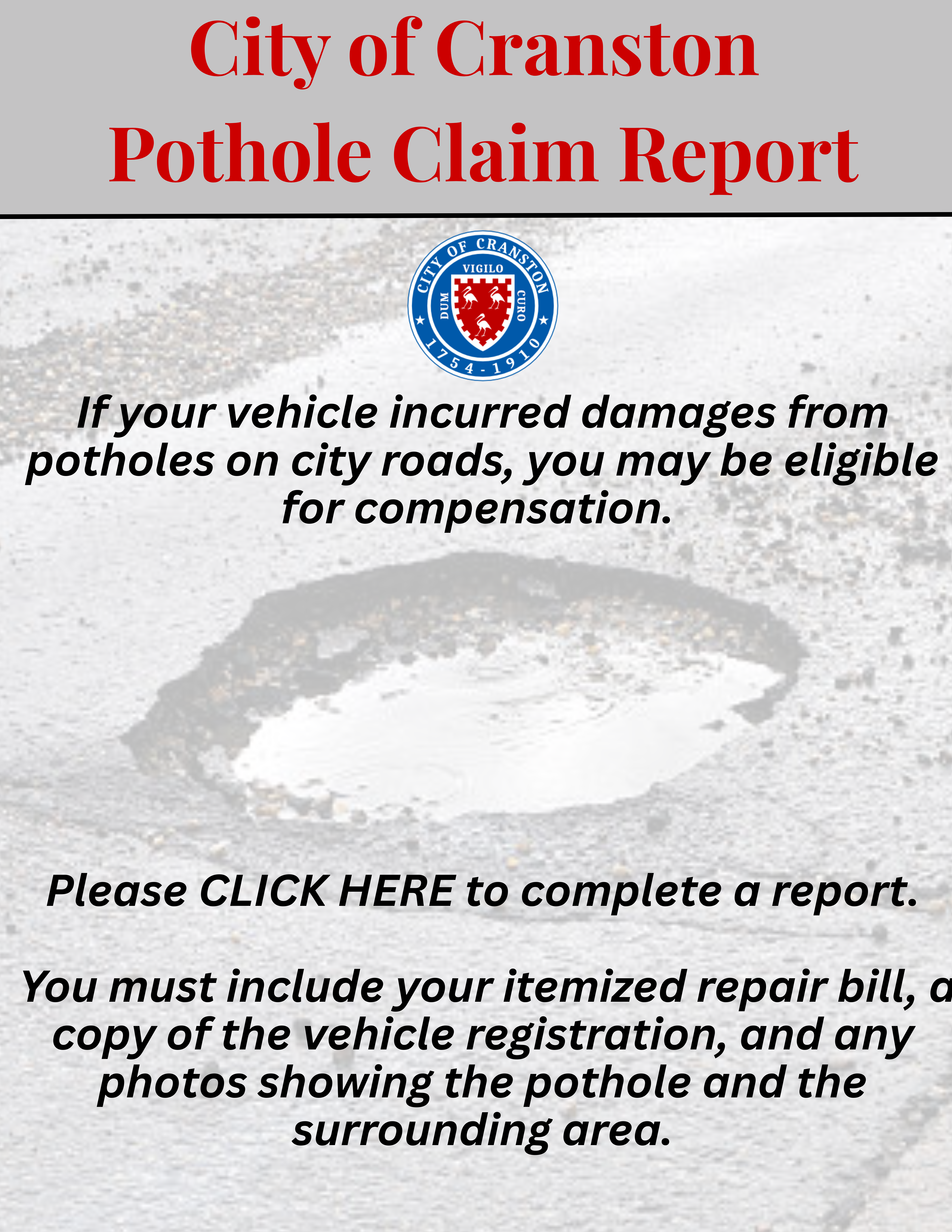 City of Cranston Pothole Claim Report