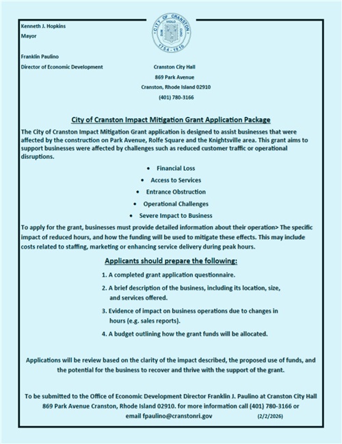 The City of Cranston Economic Development Programs