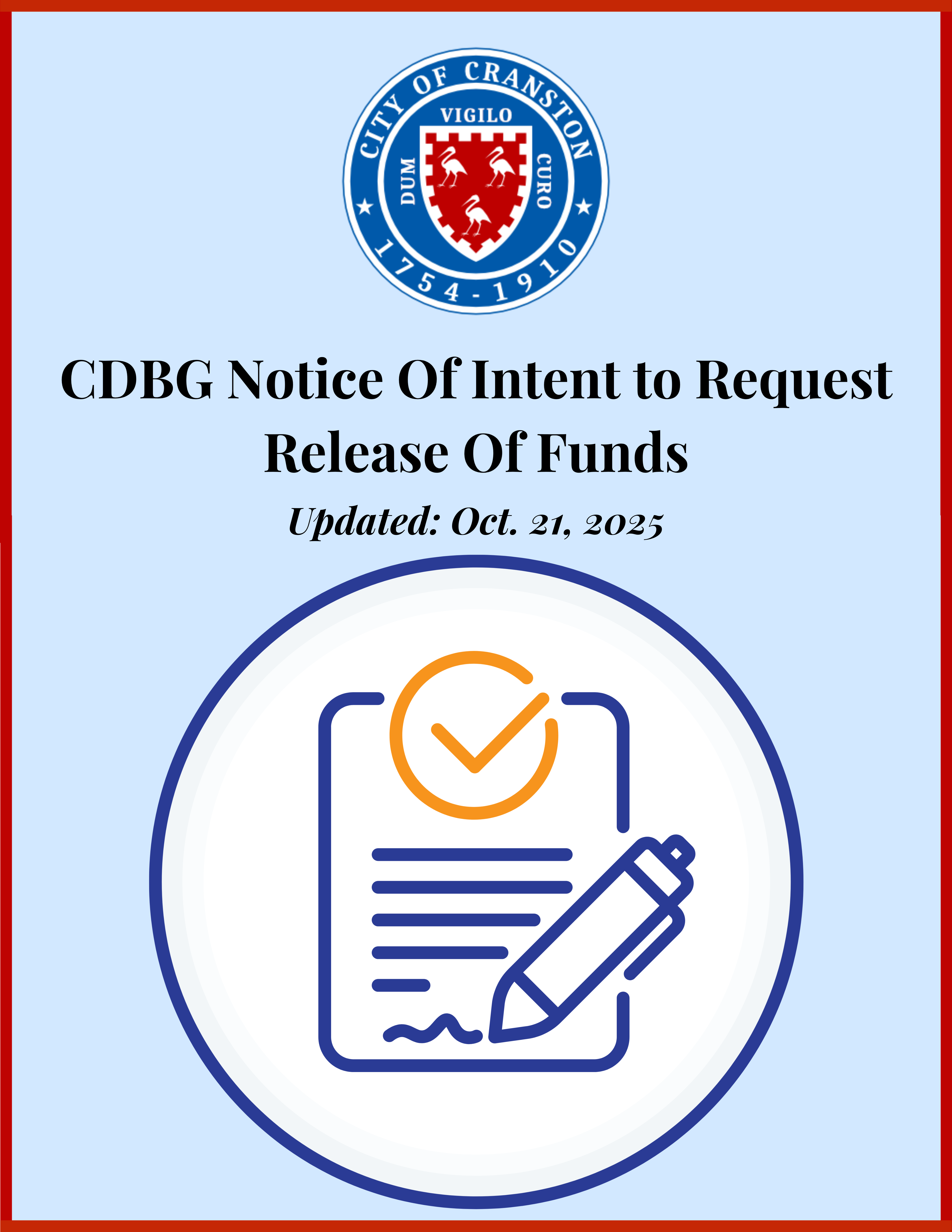 City of Cranston Community Development Block Grant (CDBG) Notice of Intent to Request Release of Funds, by project